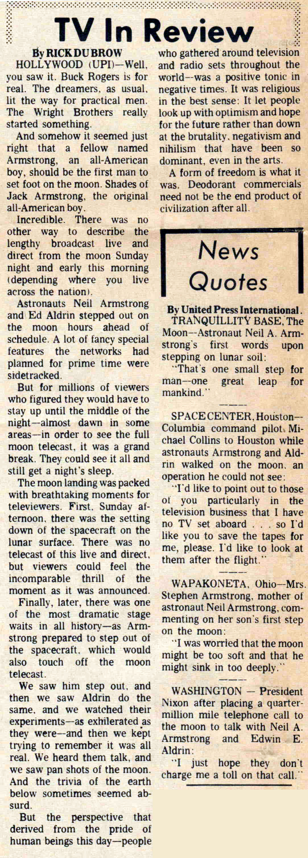 This clipping is from the July 20, 1969 Tulsa World. See you next Monday!